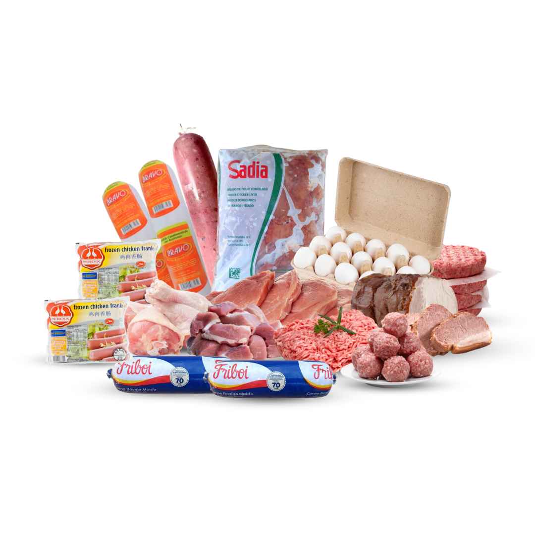 Combo surtido con carnes, pescado y alimentos básicos ideal para preparar deliciosas comidas en casa.