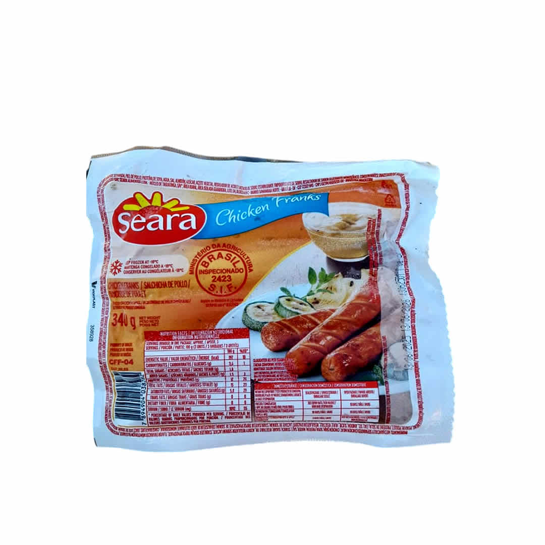 ¡Descubre las exquisitas Salchichas de Pollo Seara en un práctico envase de 340g! Ideales para tus comidas favoritas.